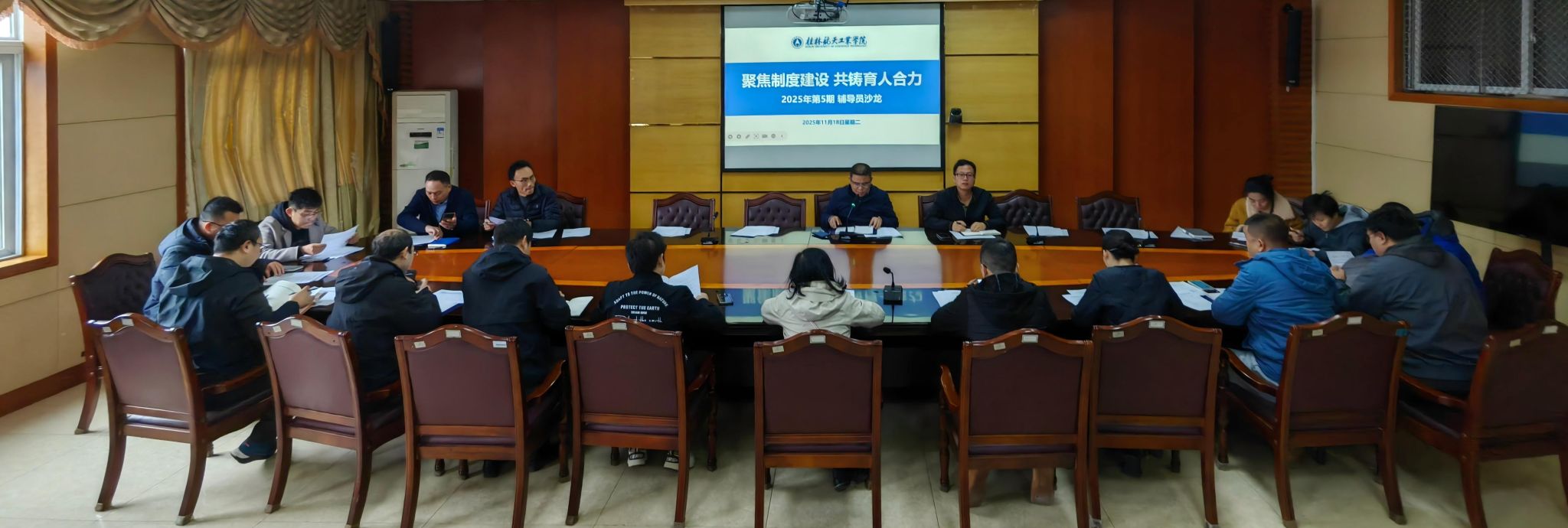 11月18日上午10:30,我校学工部(处)在飞天楼517会议室举办了2025年第5期辅导员沙龙活动,主题为“聚焦制度建设 共铸育人合力”。学工部(处)全体负责人以及一至十一院党委副书记、团委书记参加了本次活动。