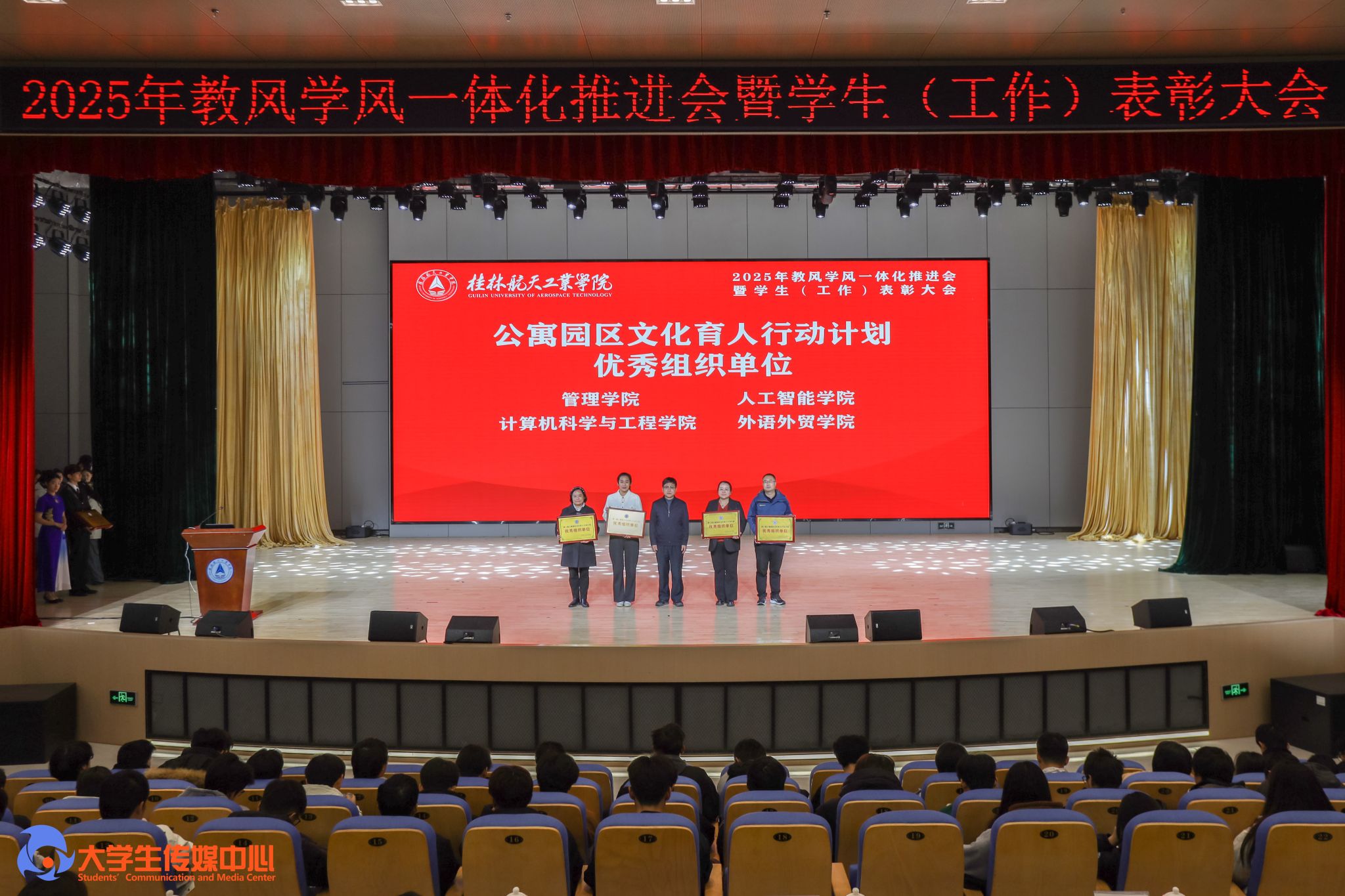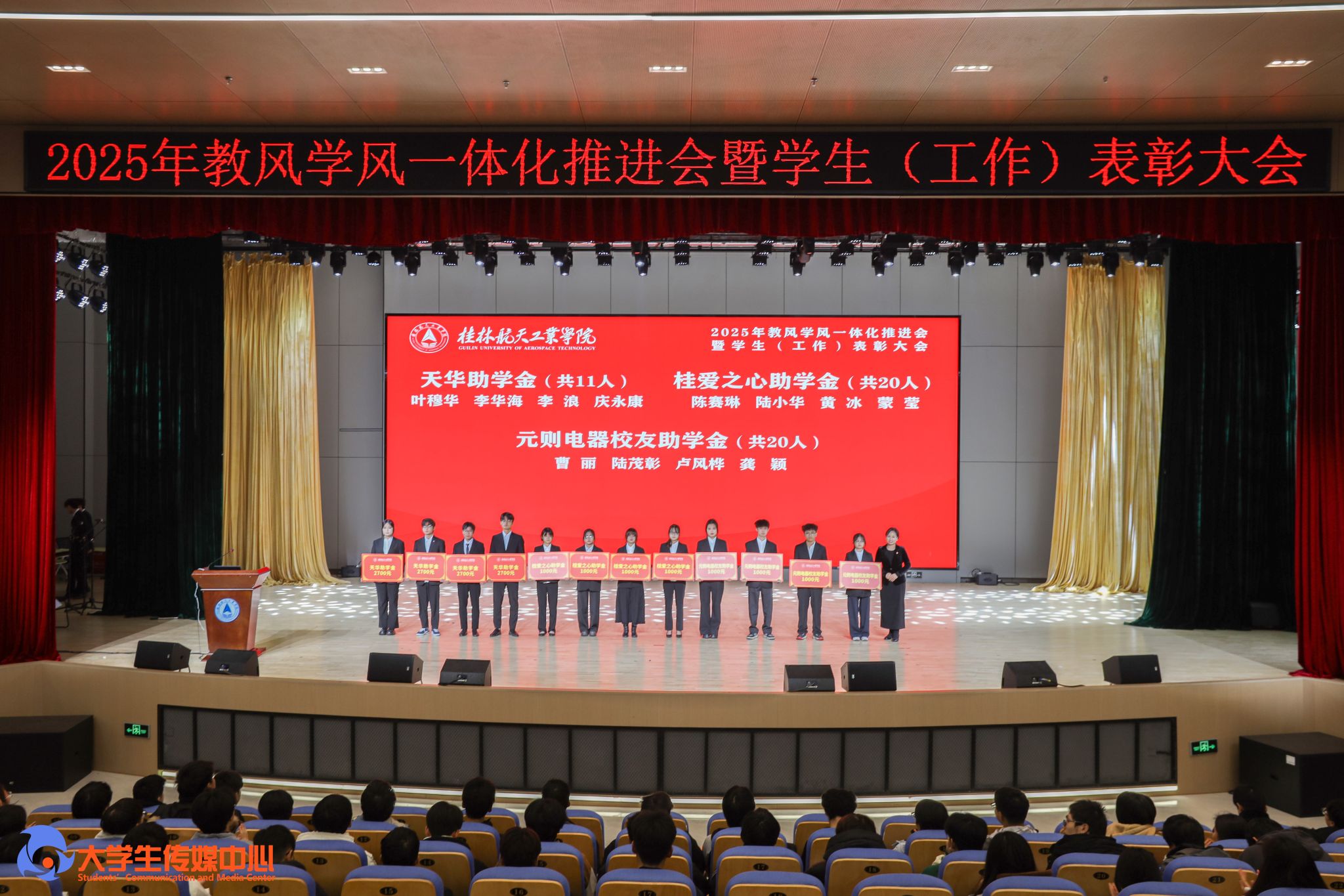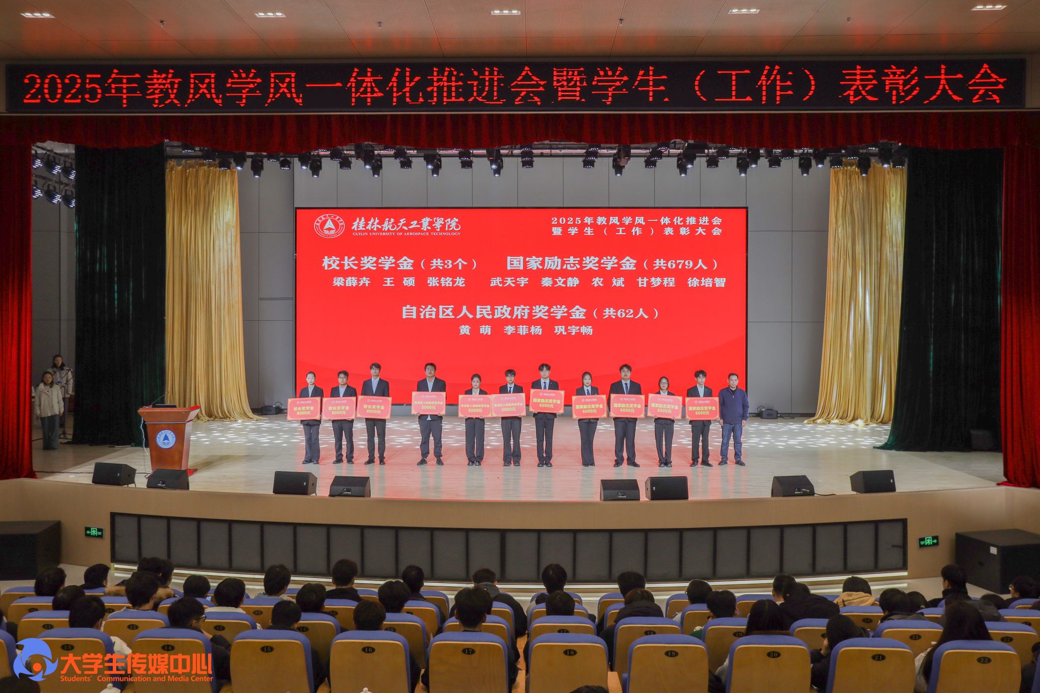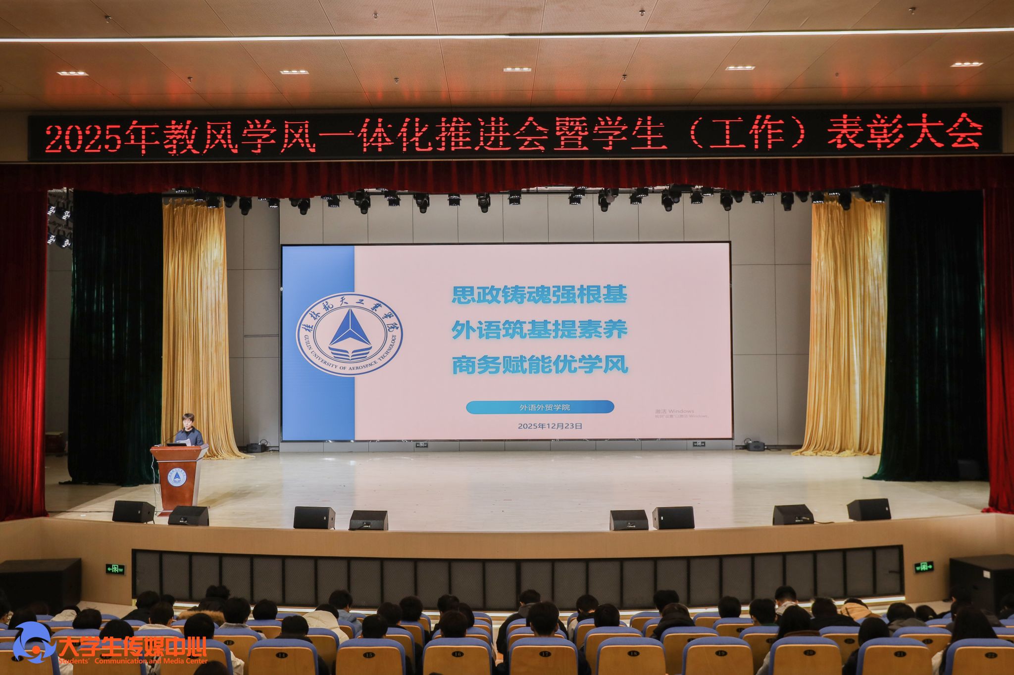 会上,在场师生共同观看了“星辰耀桂航 领航起新章”2025年学生(工作)总结视频;大学生艺术团、钱学森班成员围绕大会主旨进行了歌舞、朗诵表演。国家奖学金获奖代表龚瑞雅同学、校长奖学金代表微小型飞行器实验室团队张宇嫣同学分别从个人发展、团队建设、科技创新等方面进行了交流发言;学工部(处)、教务处、人工智能学院和外语外贸学院主要负责人就教风学风一体化推进工作作了工作安排及经验交流。