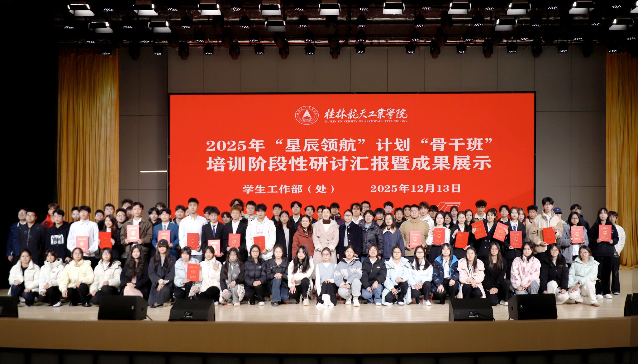 12月13日,学生工作部(处)在南校区问天楼学术报告会厅组织开展“星辰领航”计划“骨干班”培训阶段性研讨汇报暨成果展示会。学生工作部(处)负责人、评委嘉宾、新生辅导员代表、助理班主任、全体骨干班成员参会。