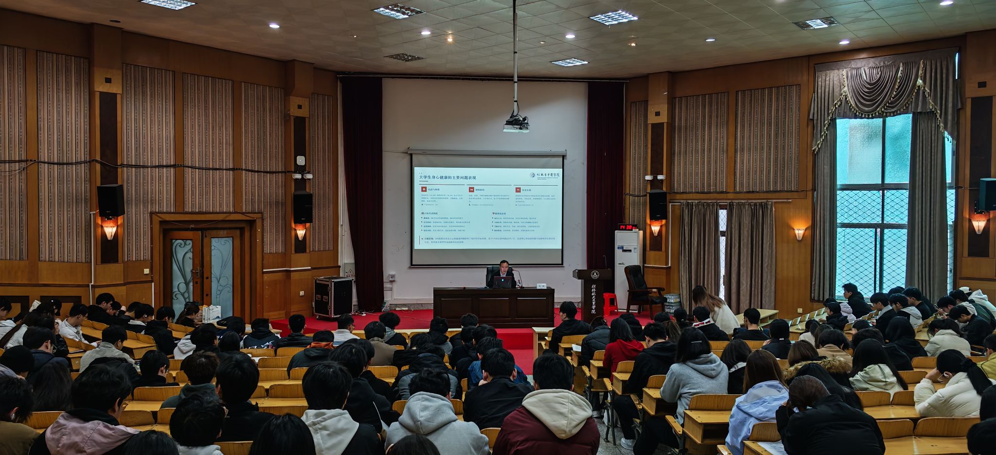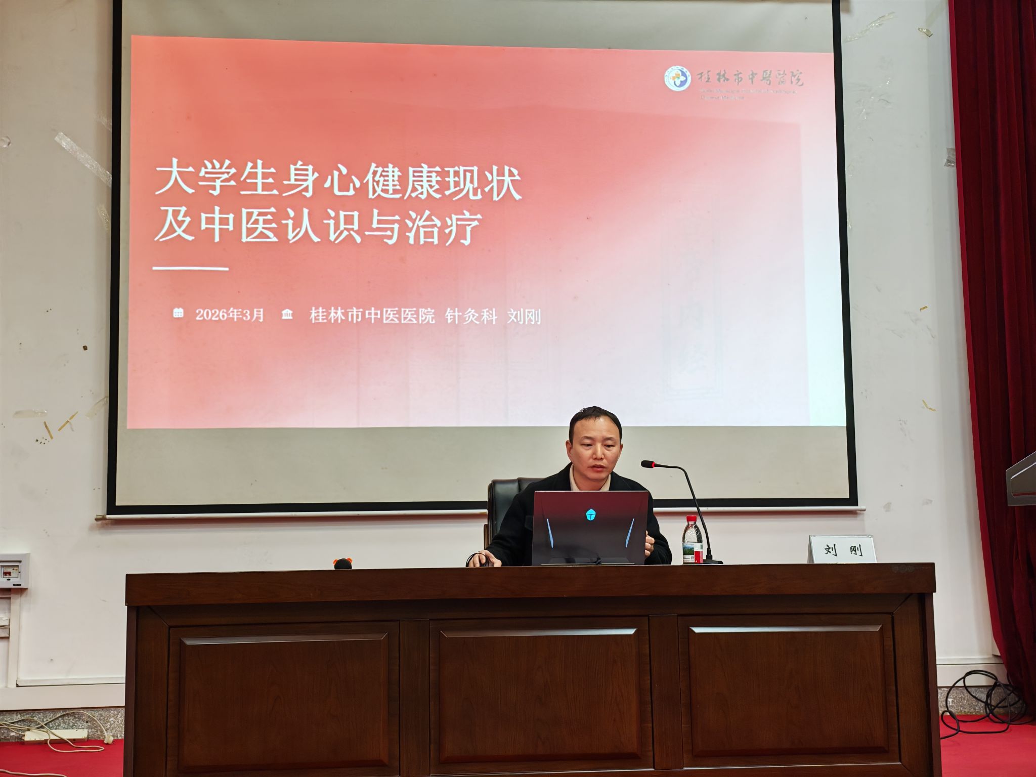 为践行“健康第一”教育理念,强化学生预防身心疾病的意识与能力,3月20日,学校特邀桂林市中医医院专家团队来校,为师生带来一场别开生面的主题讲座。活动在北校致远楼108报告厅举行,吸引了近300名师生到场聆听。