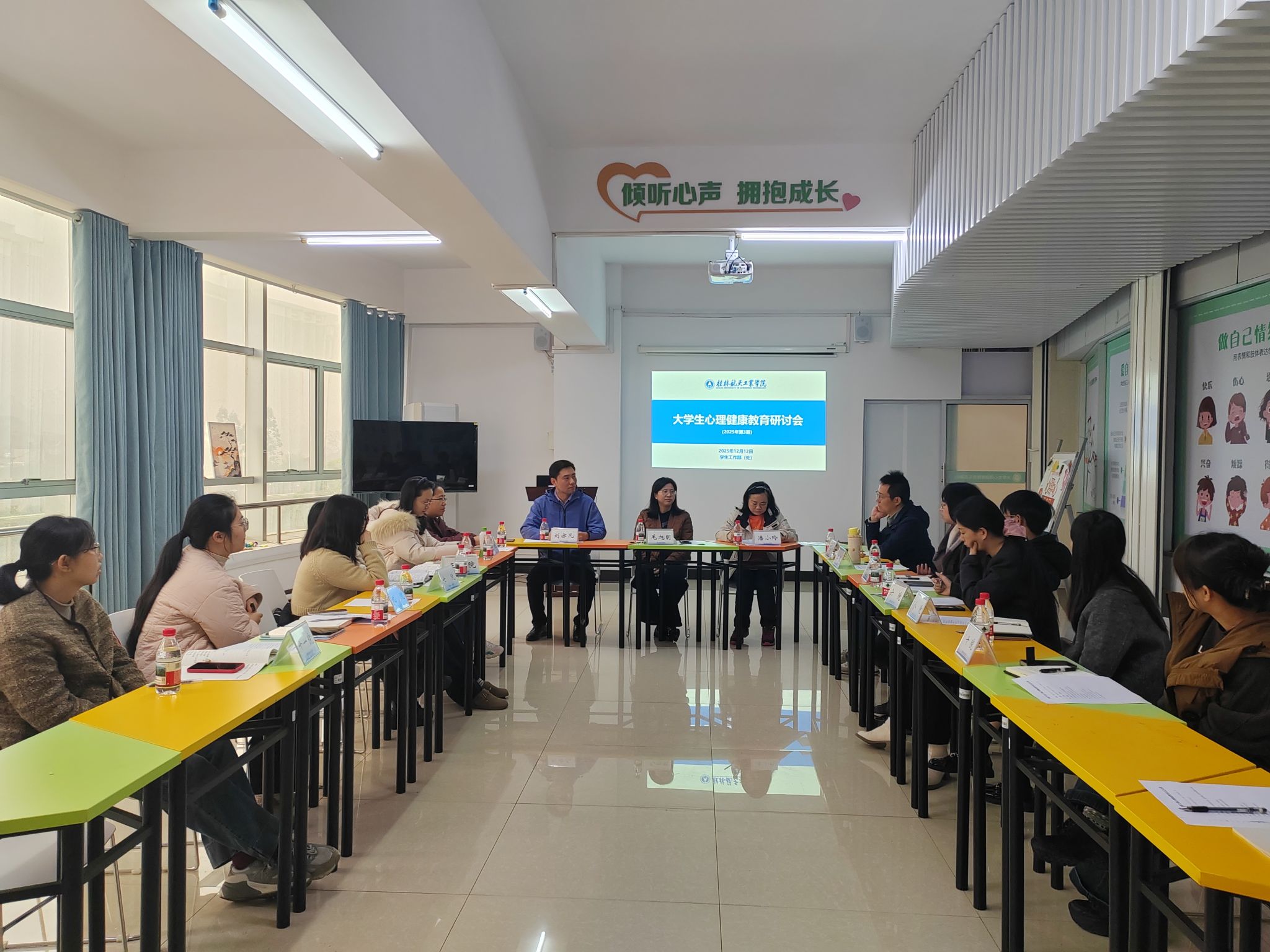 12月12日上午,学生工作部(处)在飞天楼422会议室组织召开了2025年度第3期心理健康教育工作研讨会。心理中心负责人、心理中心全体工作人员、相关学院学生工作负责人、辅导员代表和各学院心理工作站负责人出席会议,共同交流经验、研讨当前心理健康教育工作的重点与难点。